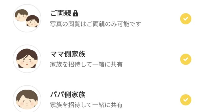 両親にもアプリを入れてもらえば簡単に共有することができるので、離れていても子供の成長を一緒に見ることができますね。